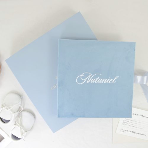 Welurowy album na zdjęcia „Dotyk Nieba” – Pamiątka Chrztu Świętego dla chłopca