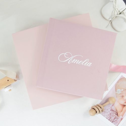 Welurowy Album na Zdjęcia „Pudrowy Dotyk” – Pamiątka Chrztu Świętego Dziewczynki