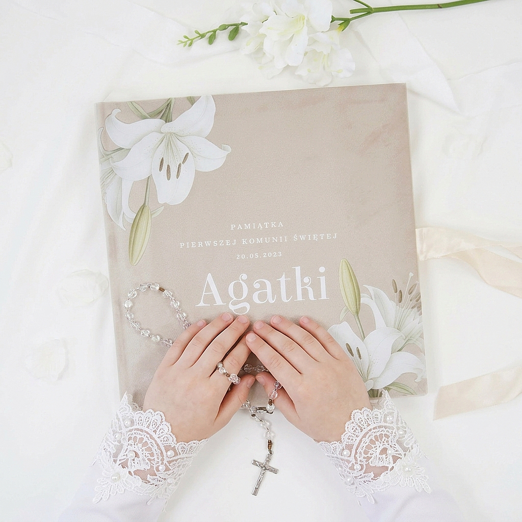 To doskonały album na komunię na prezent od rodziców, dziadków czy chrzestnych. Sprawdzi się zarówno jako upominek wręczany bezpośrednio po uroczystości, jak i pamiątka przygotowana z myślą o późniejszych wspomnieniach. Do takiego albumu wraca się z czułością, ponieważ przechowuje nie tylko zdjęcia, lecz także emocje, rodzinne ciepło i piękno chwili, która pozostaje w pamięci na długo. W codziennym użytkowaniu album zachowuje wysoki komfort, ponieważ jego przemyślana konstrukcja sprzyja uporządkowanemu układaniu fotografii. Można w nim umieścić nie tylko zdjęcia z ceremonii, lecz także ujęcia z przygotowań, rodzinnego obiadu czy spotkań z bliskimi. To właśnie taka pełniejsza opowieść nadaje wspomnieniom autentyczność i sprawia, że album na komunię po latach nadal wzrusza tak samo mocno. Taka pamiątka zawsze pozostaje bliska sercu. To także sposób na przechowanie emocji, które po latach wracają z pełną siłą na zawsze.