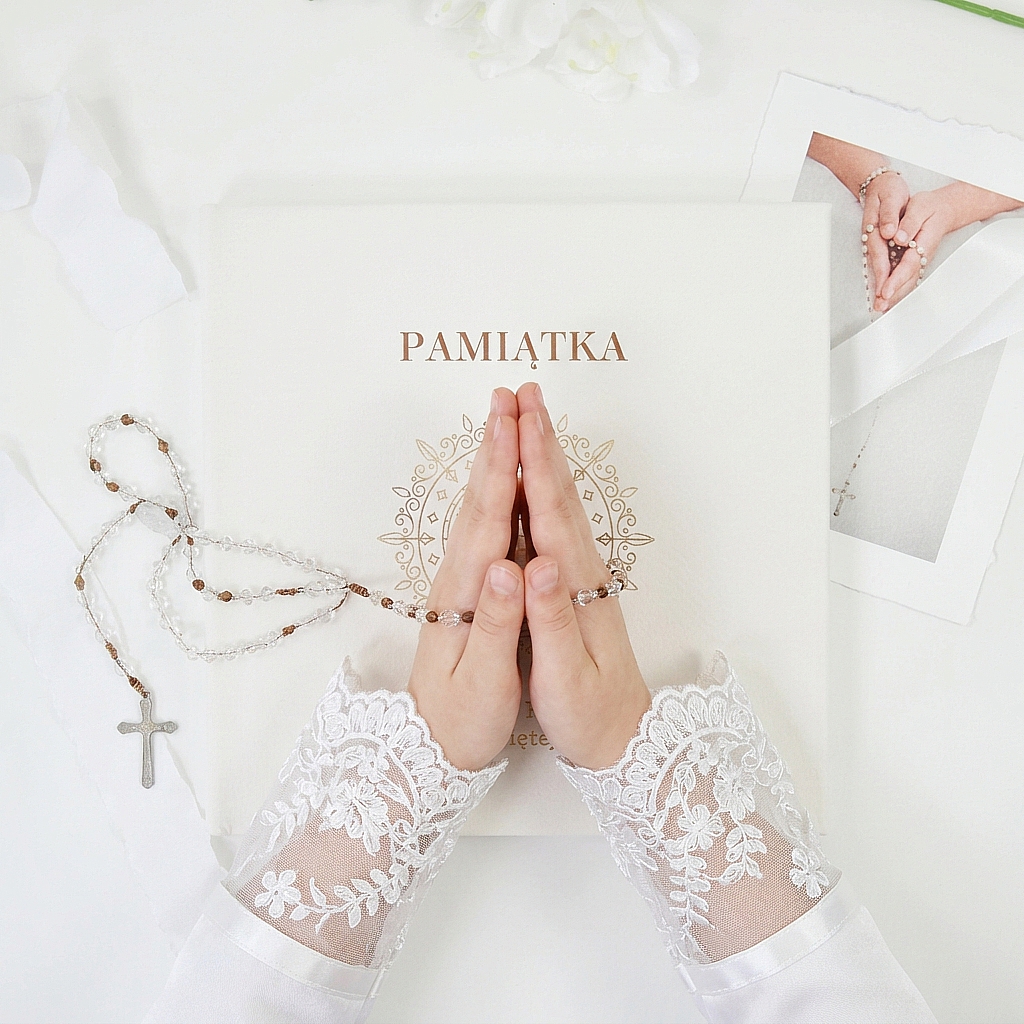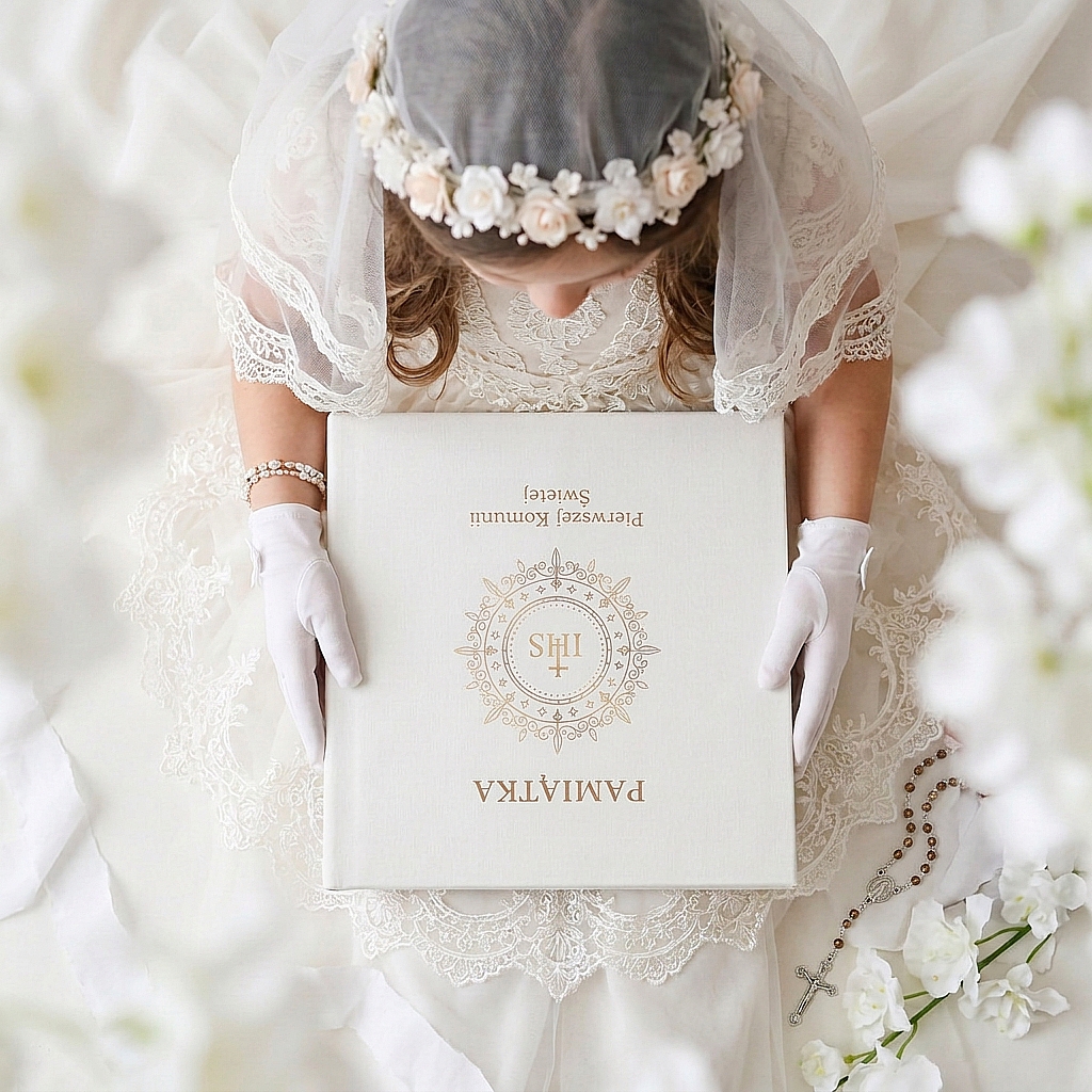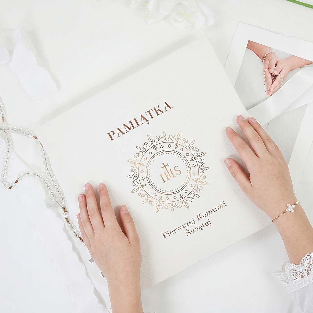 To doskonały album na komunię na Pierwszą Komunię Świętą oraz rodzinne spotkania, które jej towarzyszą. Sprawdzi się jako prezent od rodziców, dziadków lub chrzestnych, bo niesie ze sobą ciepło i znaczenie. Taka pamiątka z czasem nabiera jeszcze większej wartości, ponieważ przechowuje nie tylko fotografie, lecz także wspomnienie bliskości, dumy i radości z wyjątkowego dnia. Dzięki temu album staje się nie tylko miejscem na zdjęcia, ale też pięknym nośnikiem rodzinnych emocji. Z czasem może zawierać także drobne bileciki, podpisy czy krótkie dedykacje, które po latach przywołają atmosferę całego dnia. To właśnie takie detale sprawiają, że pamiątka nabiera głębi i staje się jeszcze bardziej osobista. Album na komunię dobrze znosi próbę czasu, dlatego pozostaje ważnym elementem domowego archiwum wspomnień. Ułatwia powrót do wspomnień wtedy, gdy emocje z tego dnia mają największą wartość.