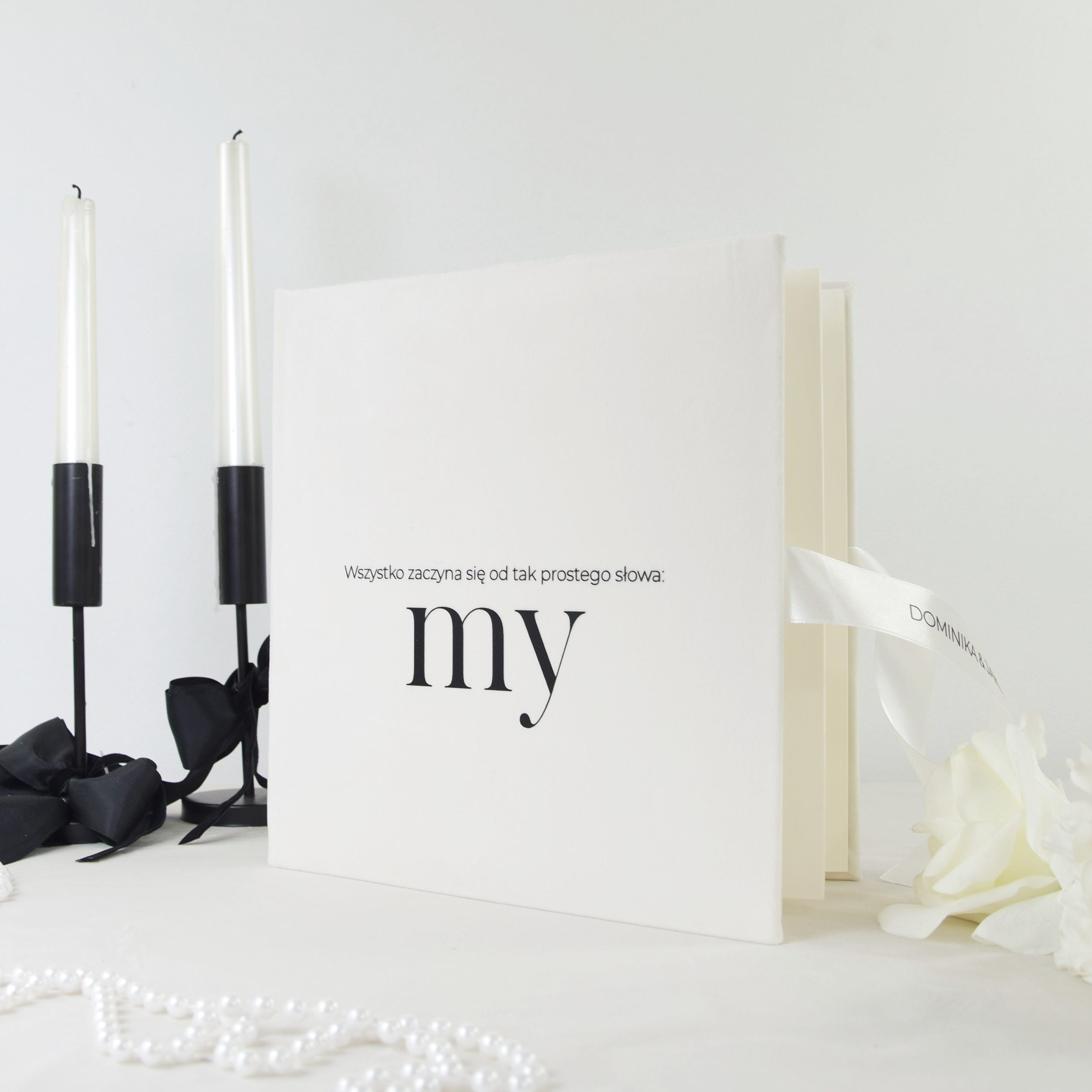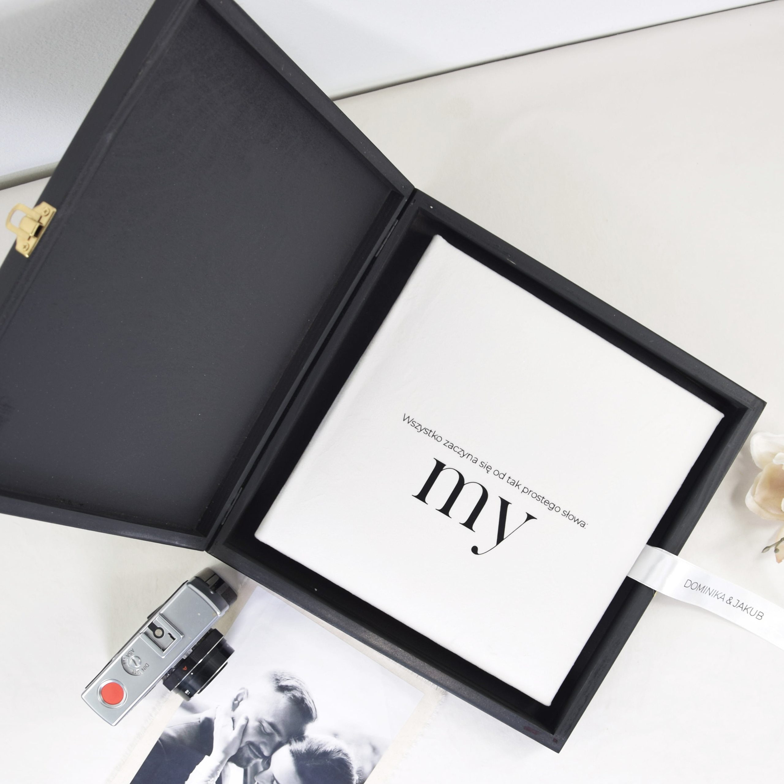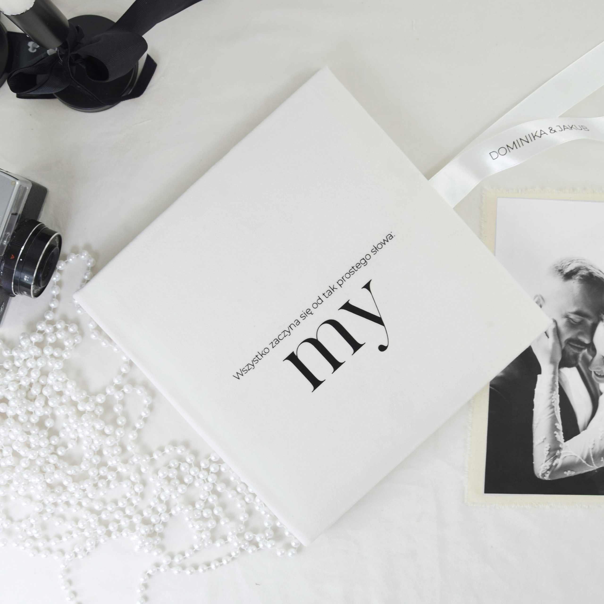 Dzięki starannemu wykonaniu i możliwości personalizacji album nabiera indywidualnego charakteru. Biała satynowa wstążka podkreśla elegancję całości, a opcjonalny napis na niej sprawia, że staje się jeszcze bardziej unikatowy. To idealny wybór dla osób, które cenią prostotę, styl i trwałość. Niezależnie od tego, czy szukasz prezentu ślubnego, pamiątki rocznicowej, czy chcesz zachować wspólne chwile w wyjątkowej formie – album „My” będzie symbolem miłości, bliskości i piękna codziennych momentów.