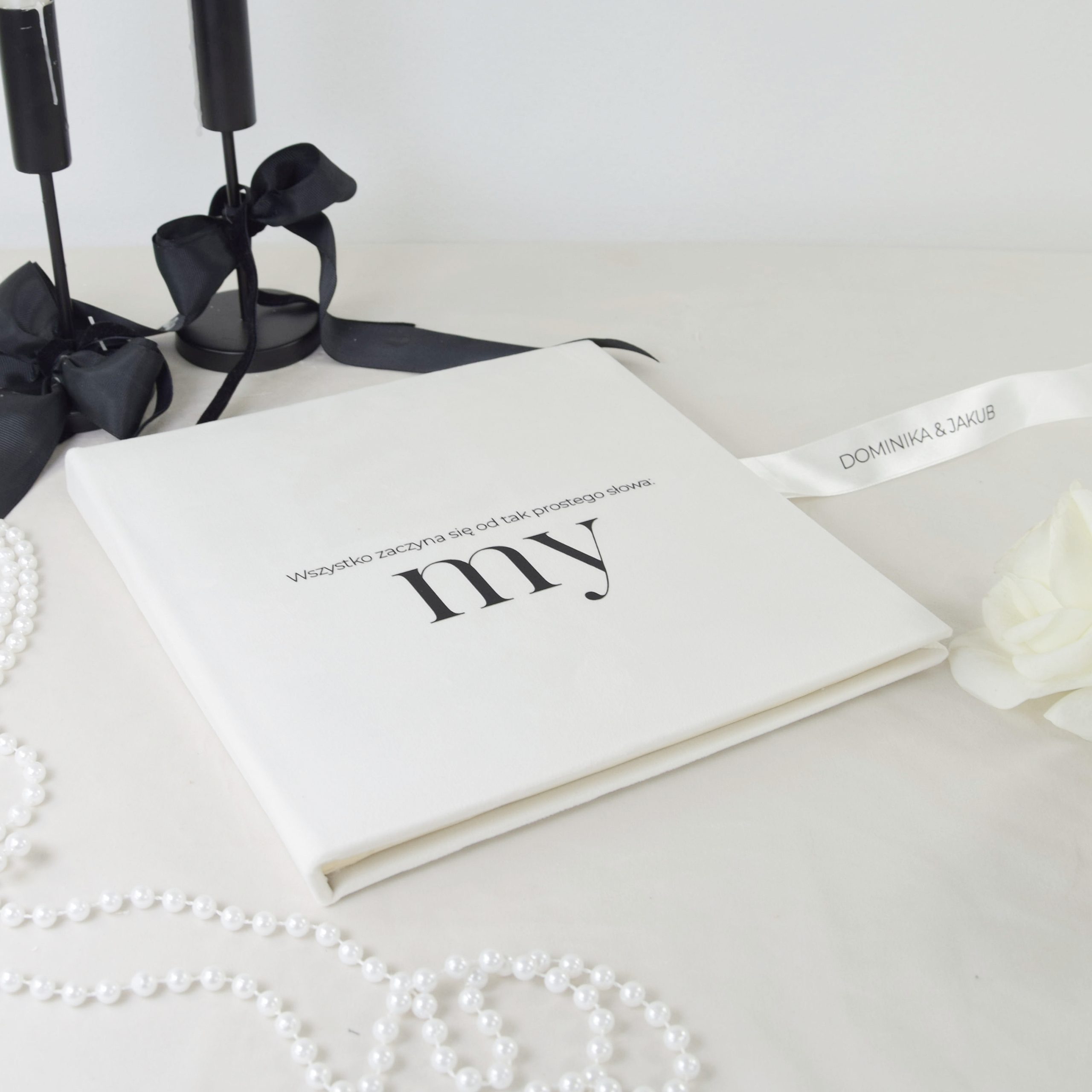To połączenie estetyki, jakości i emocji. Biała welurowa okładka, czarny minimalistyczny napis, personalizacja na wstążce – każdy detal jest przemyślany i dopracowany. To nie tylko produkt, ale przestrzeń do wyrażania uczuć, symbol relacji i dokument osobistych chwil. Elegancka forma idealnie wpisuje się w nowoczesne wnętrza i styl życia par ceniących prostotę, estetykę i ponadczasowość. To również piękna alternatywa dla klasycznych fotoksiążek – tu zdjęcia naprawdę żyją.