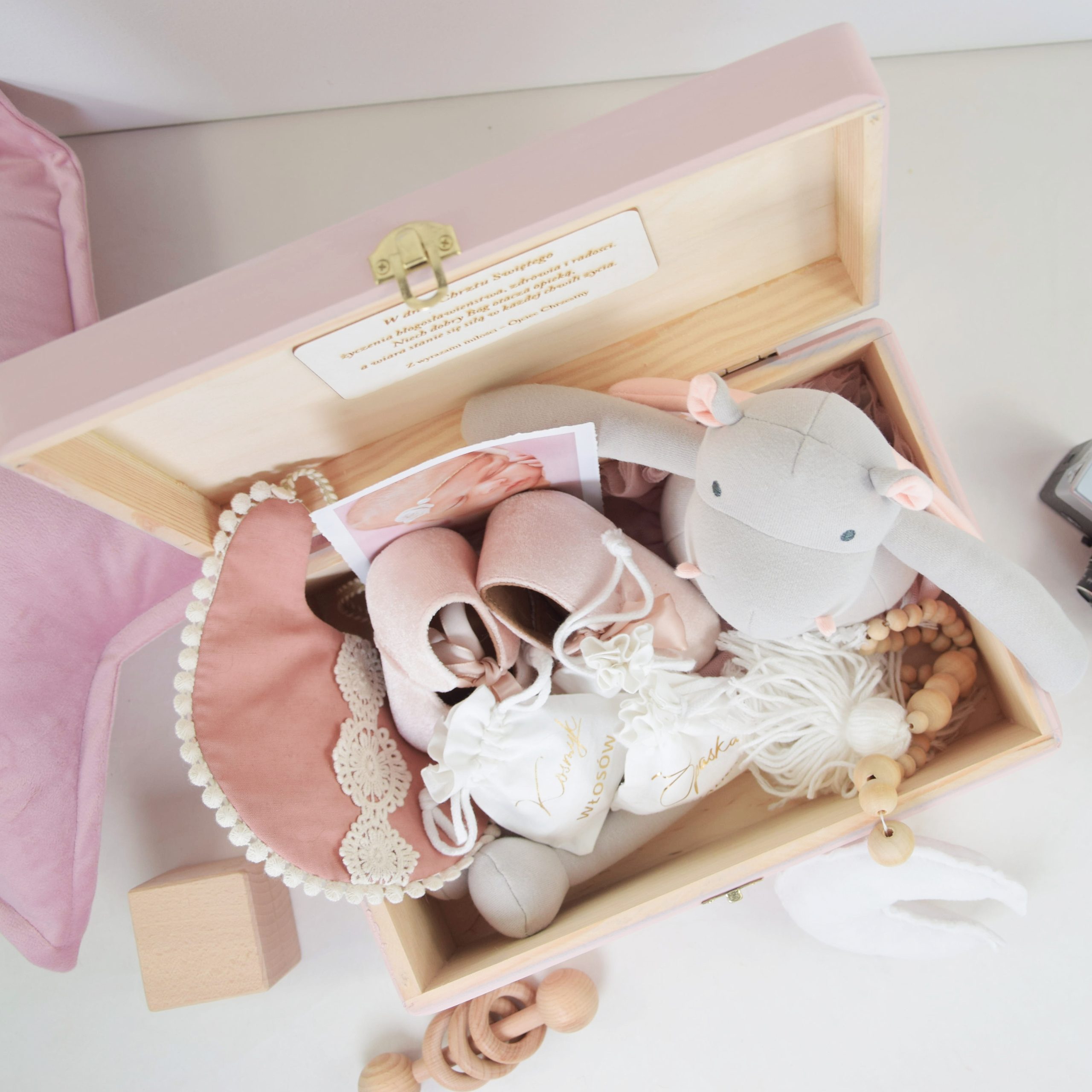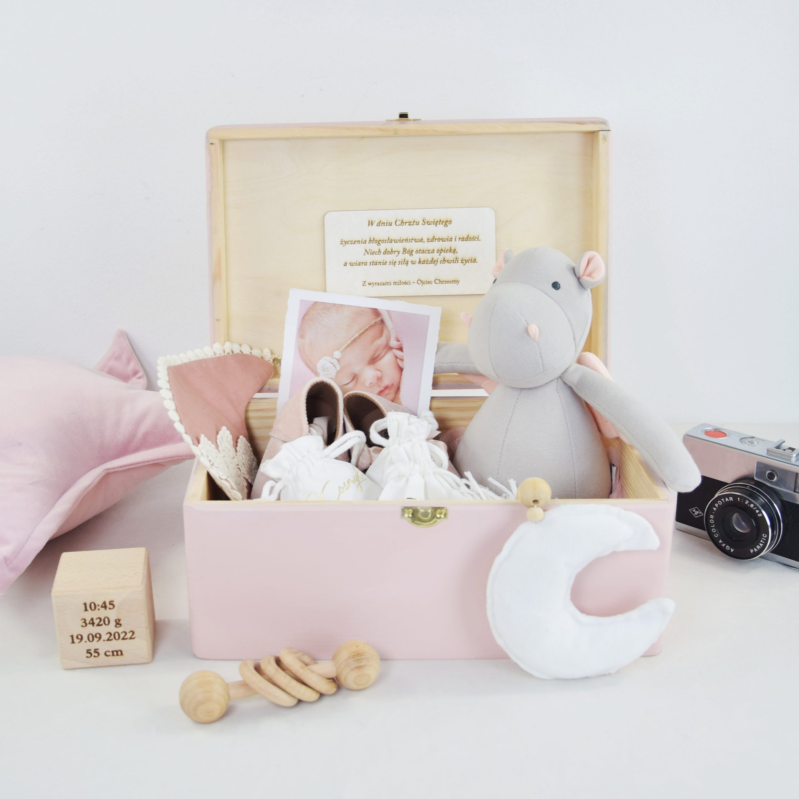 Pudełko wspomnień to wyjątkowy prezent na Chrzest Święty, narodziny dziecka, baby shower lub pierwsze urodziny. Stworzone z myślą o tych, którzy chcą podarować coś więcej niż przedmiot – miejsce na najważniejsze wspomnienia z pierwszych chwil życia dziecka. Idealne od rodziców chrzestnych, dziadków lub bliskich, którzy chcą zostawić pamiątkę na całe lata
