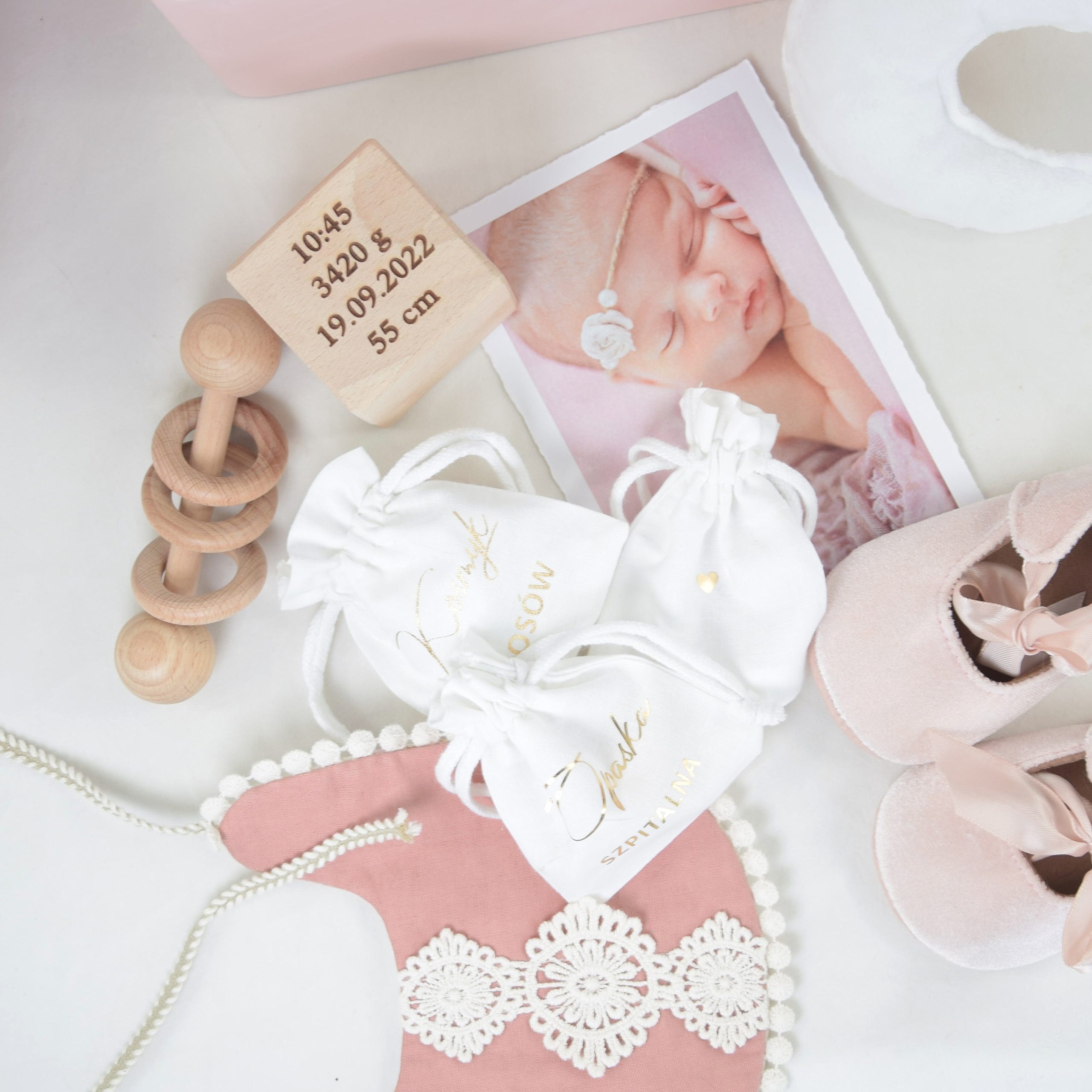 Woreczki ułatwiają porządek. Oddzielają pamiątki i skracają czas szukania. Wnętrze wygląda estetycznie nawet po latach. Do woreczków możesz włożyć opaskę ze szpitala. Możesz schować pierwszy smoczek. Zmieści się kosmyk włosów. Warto dodać też małą kartkę z datą lub krótkim wpisem. Takie detale budują historię dziecka i rodziny.