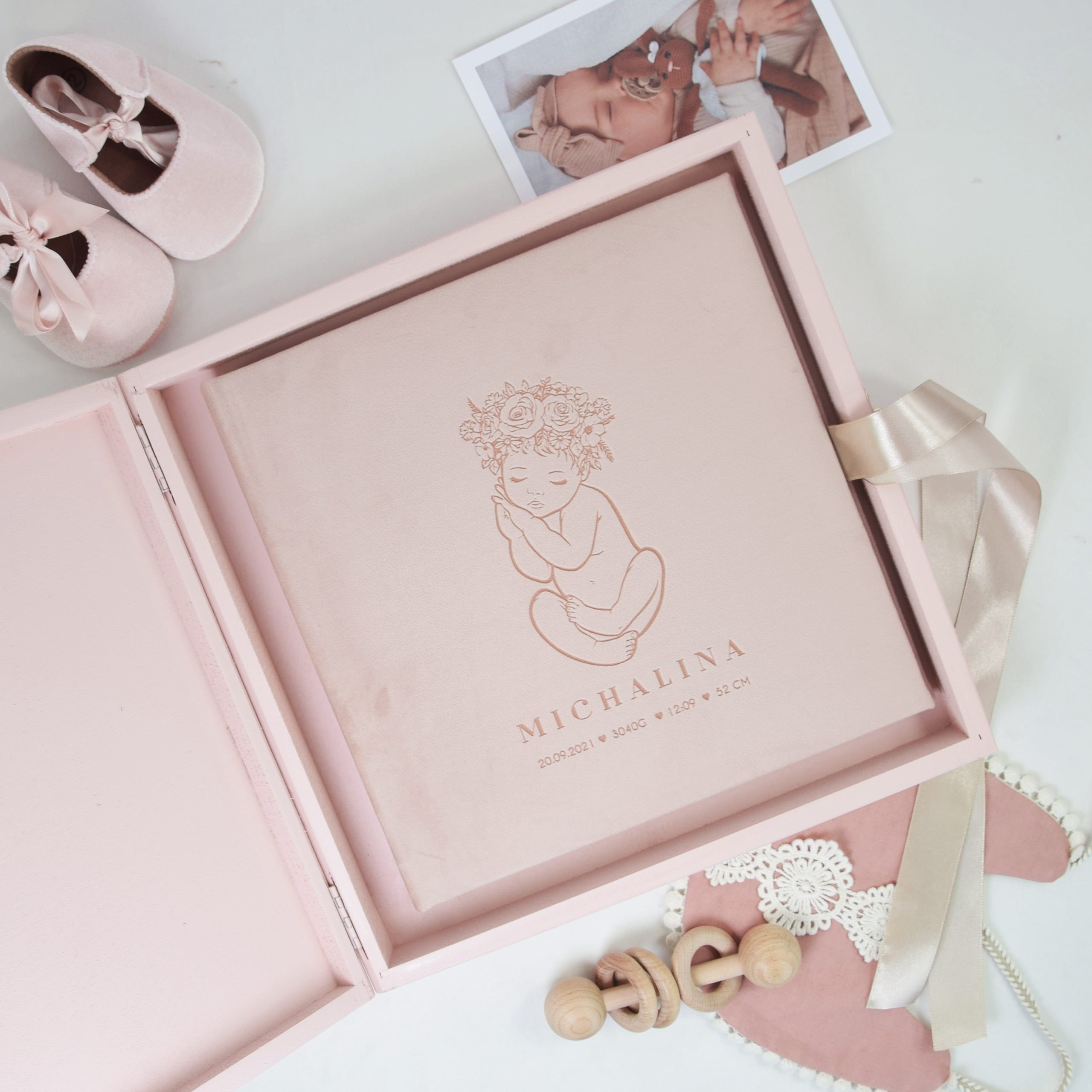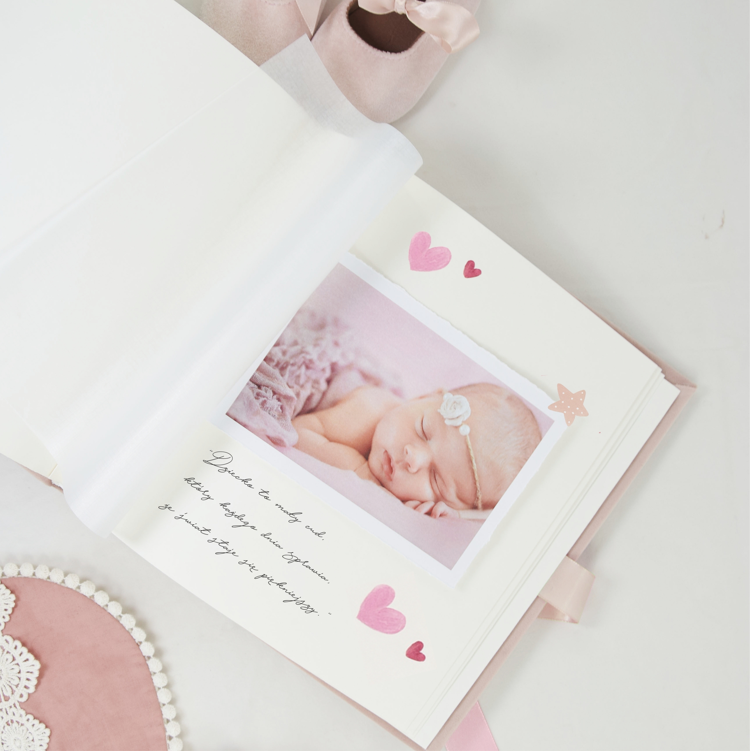 Bo łączy w sobie estetykę, jakość i emocje. Miękka welurowa okładka w odcieniu łososiowym, złoty grawer i satynowa wstążka tworzą połączenie, które zachwyca od pierwszego dotyku. W przeciwieństwie do galerii cyfrowych, tradycyjny album na zdjęcia pozwala naprawdę przeżyć wspomnienia – zatrzymać je w dłoniach, przekazywać z pokolenia na pokolenie.To nie tylko produkt – to pamiątka dzieciństwa, w której zaklęta jest miłość, bliskość i magia pierwszych chwil życia dziecka.