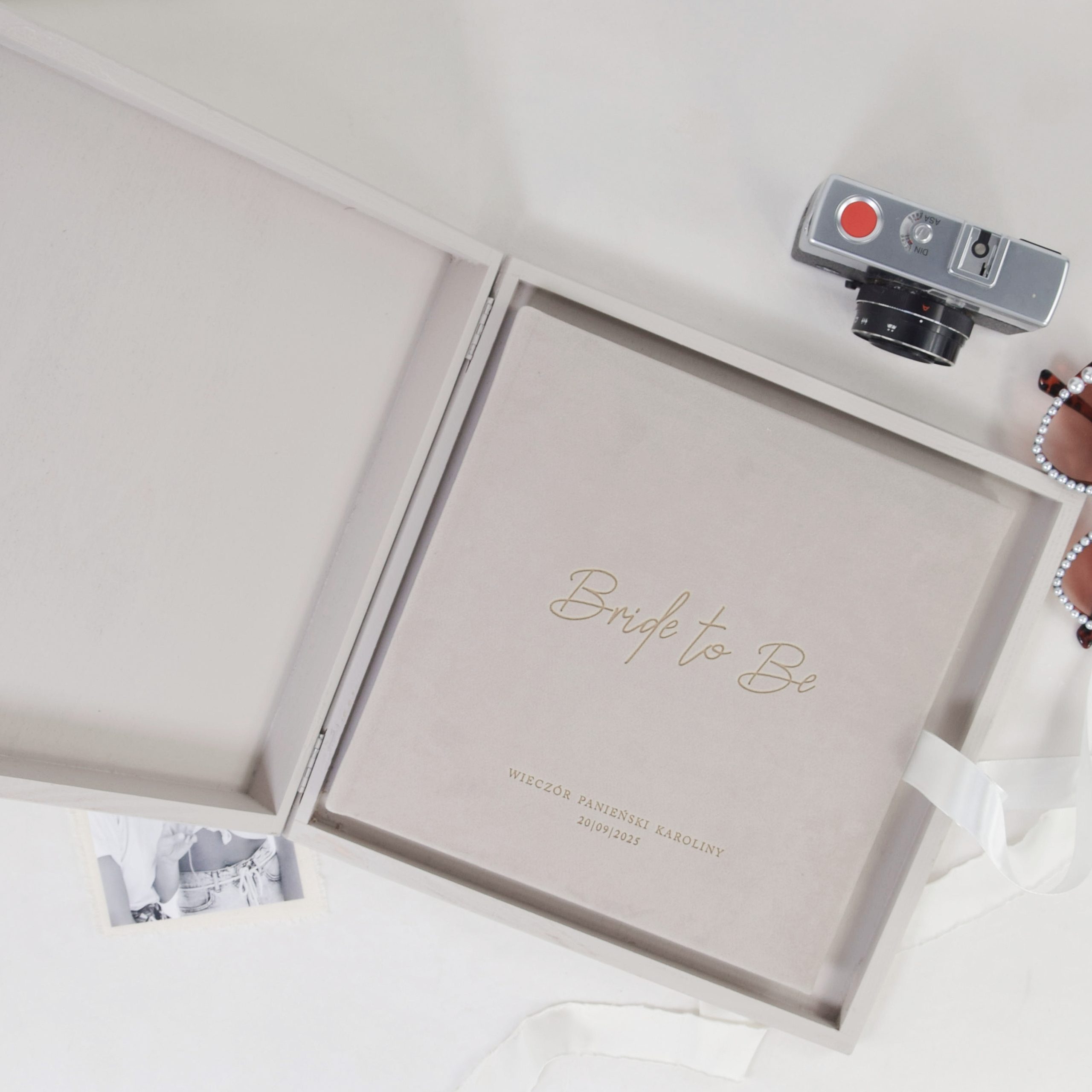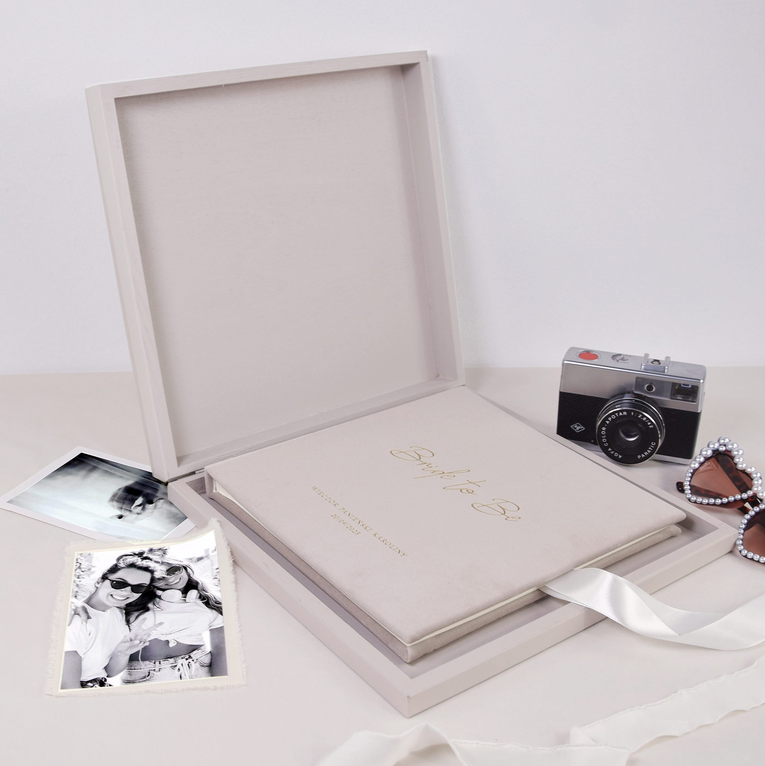 Album i pudełko możesz spersonalizować – dodaj imię przyszłej Panny Młodej, datę imprezy czy krótkie hasło, a zestaw stanie się niezapomnianą pamiątką dla obdarowanej