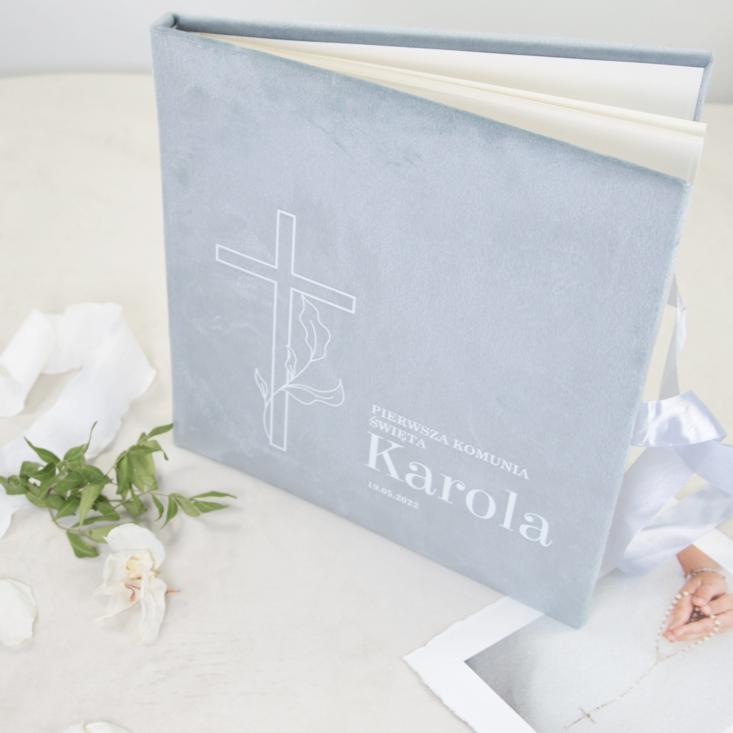 Postaw na ponadczasowy prezent w pięknej oprawie. Zatrzymaj najpiękniejsze chwile z Pierwszej Komunii Świętej na fotografiach i umieść je w welurowym albumie zamkniętym w eleganckim pudełku. Zamiast szybkiego przewijania obrazów na telefonie, wracaj do wspomnień w spokojny, bardziej osobisty sposób. Taki zestaw komunijny tworzy uporządkowaną, bezpiecznie przechowaną historię. To pamiątka, która ma wielką wartość i nie traci swojego uroku przez lata.