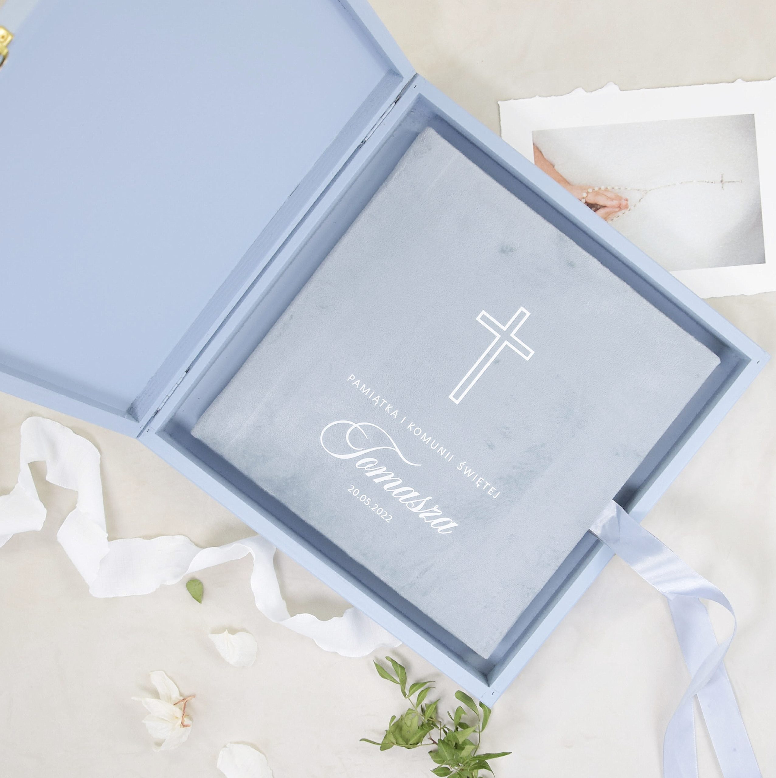 Postaw na ponadczasowy prezent w pięknej oprawie. Zatrzymaj najpiękniejsze chwile z Pierwszej Komunii Świętej na fotografiach i umieść je w welurowym albumie zamkniętym w eleganckim pudełku. Zamiast szybkiego przewijania obrazów na telefonie, wracaj do wspomnień w spokojny, bardziej osobisty sposób. Taki zestaw komunijny tworzy uporządkowaną, bezpiecznie przechowaną historię. To pamiątka, która ma wielką wartość i nie traci swojego uroku przez lata.