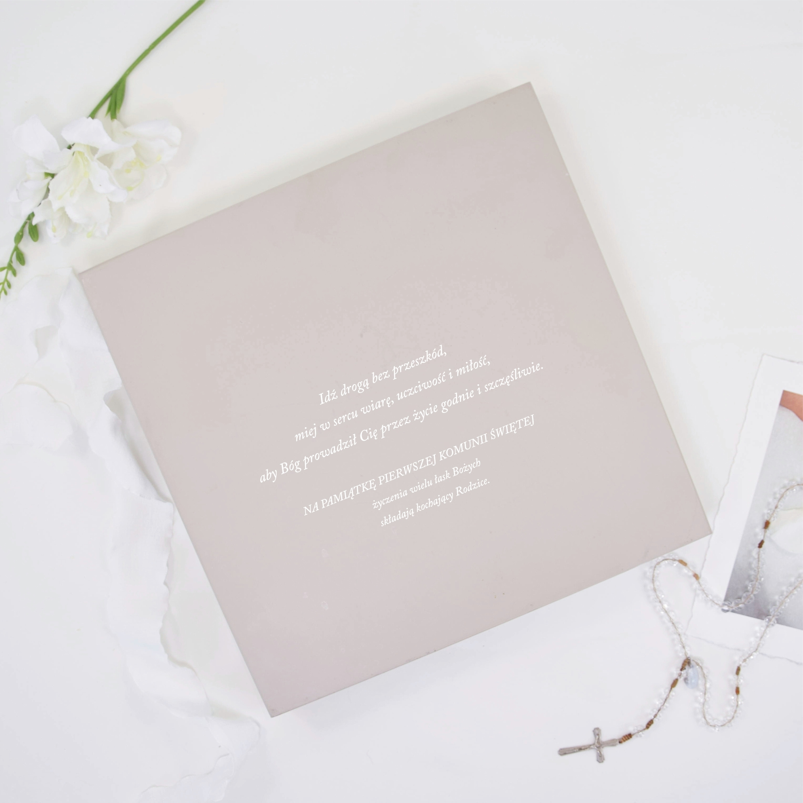 To piękny album na komunię, który sprawdzi się jako prezent od rodziców, dziadków lub chrzestnych. Drewniane pudełko dodaje mu szlachetności, a całość sprawia wrażenie upominku przygotowanego z myślą o czymś naprawdę ważnym. Taki album na komunię pozostaje pamiątką na lata, bo przechowuje nie tylko zdjęcia, ale też emocje, bliskość i wzruszenie związane z tym wyjątkowym wydarzeniem. Z biegiem czasu staje się częścią rodzinnej historii, do której chętnie się wraca.