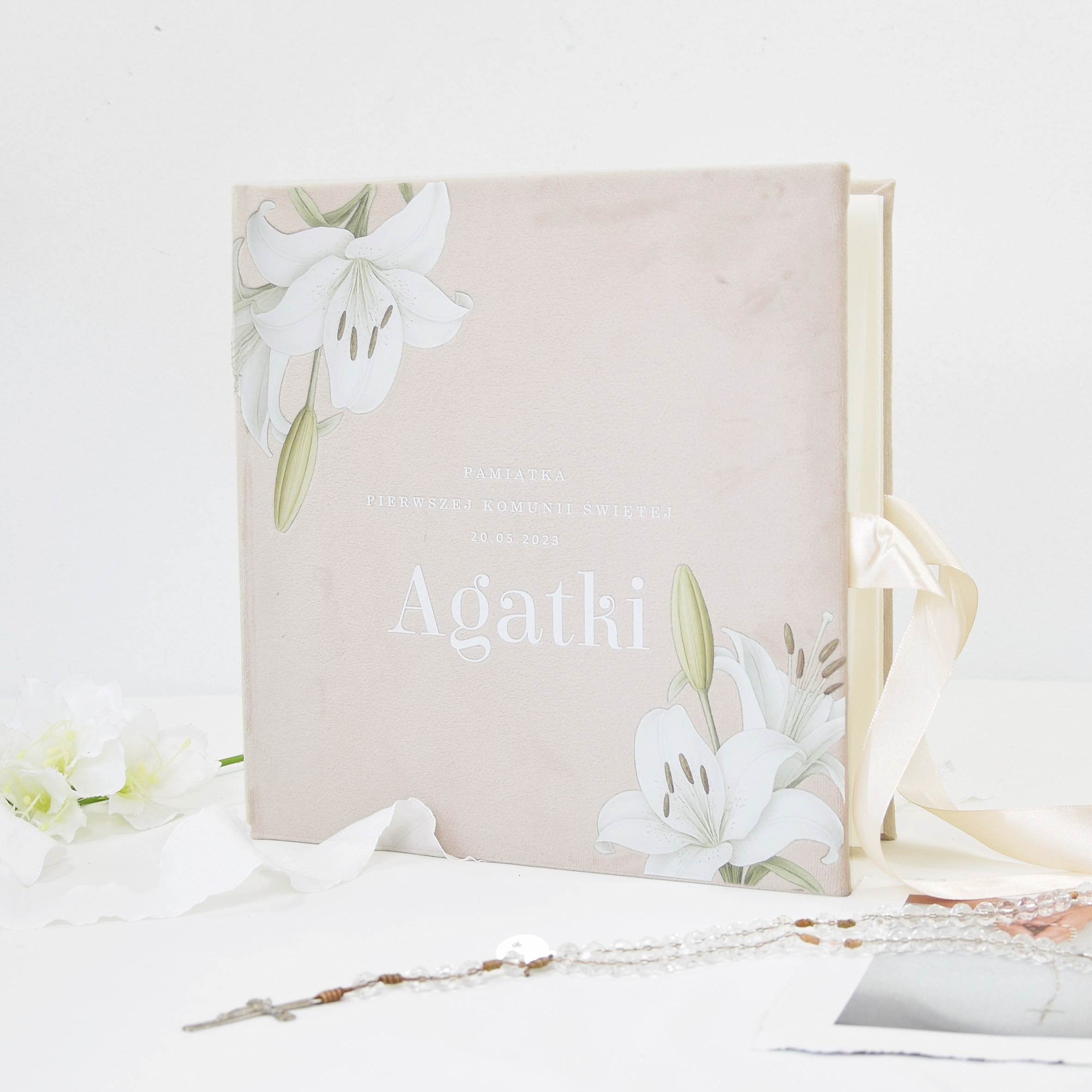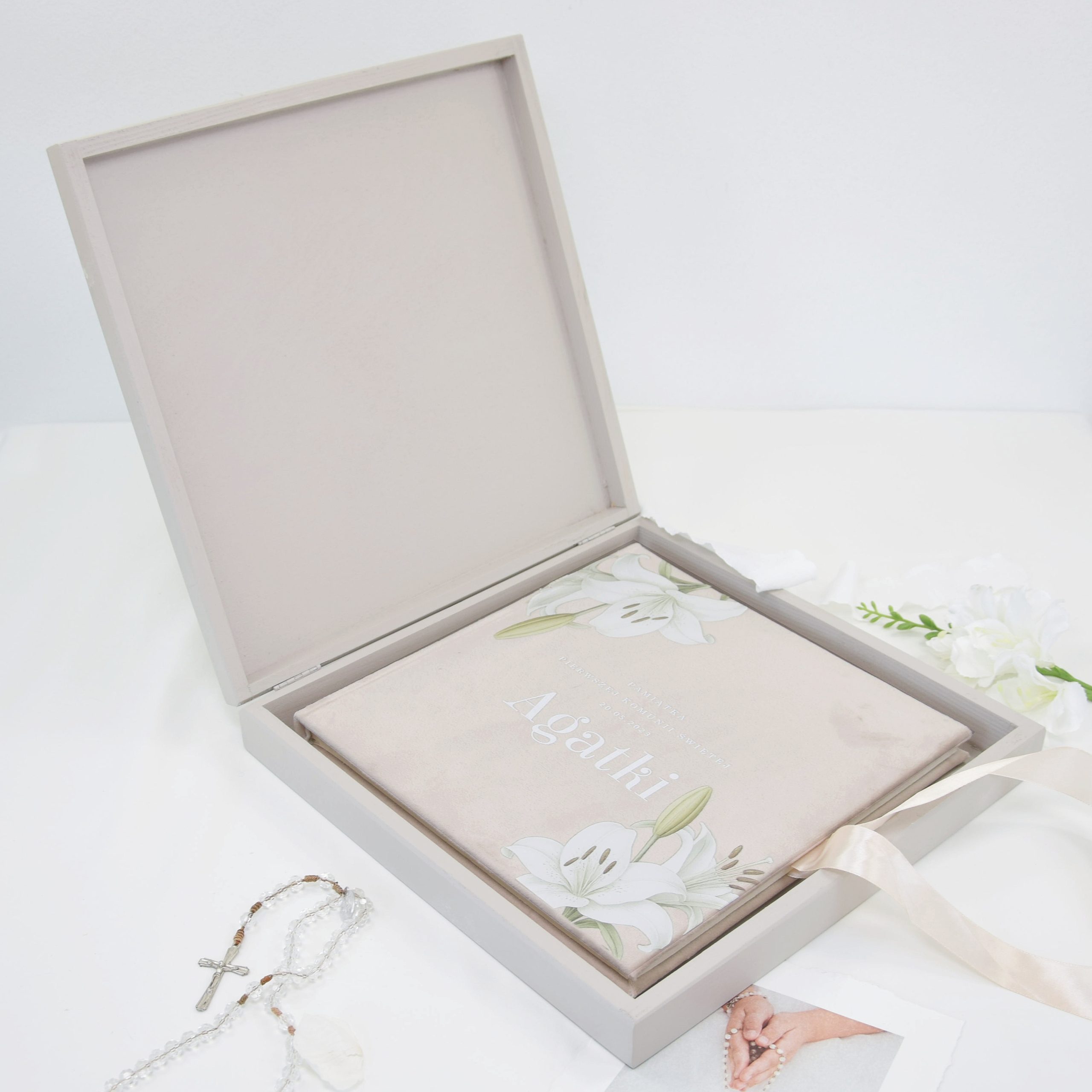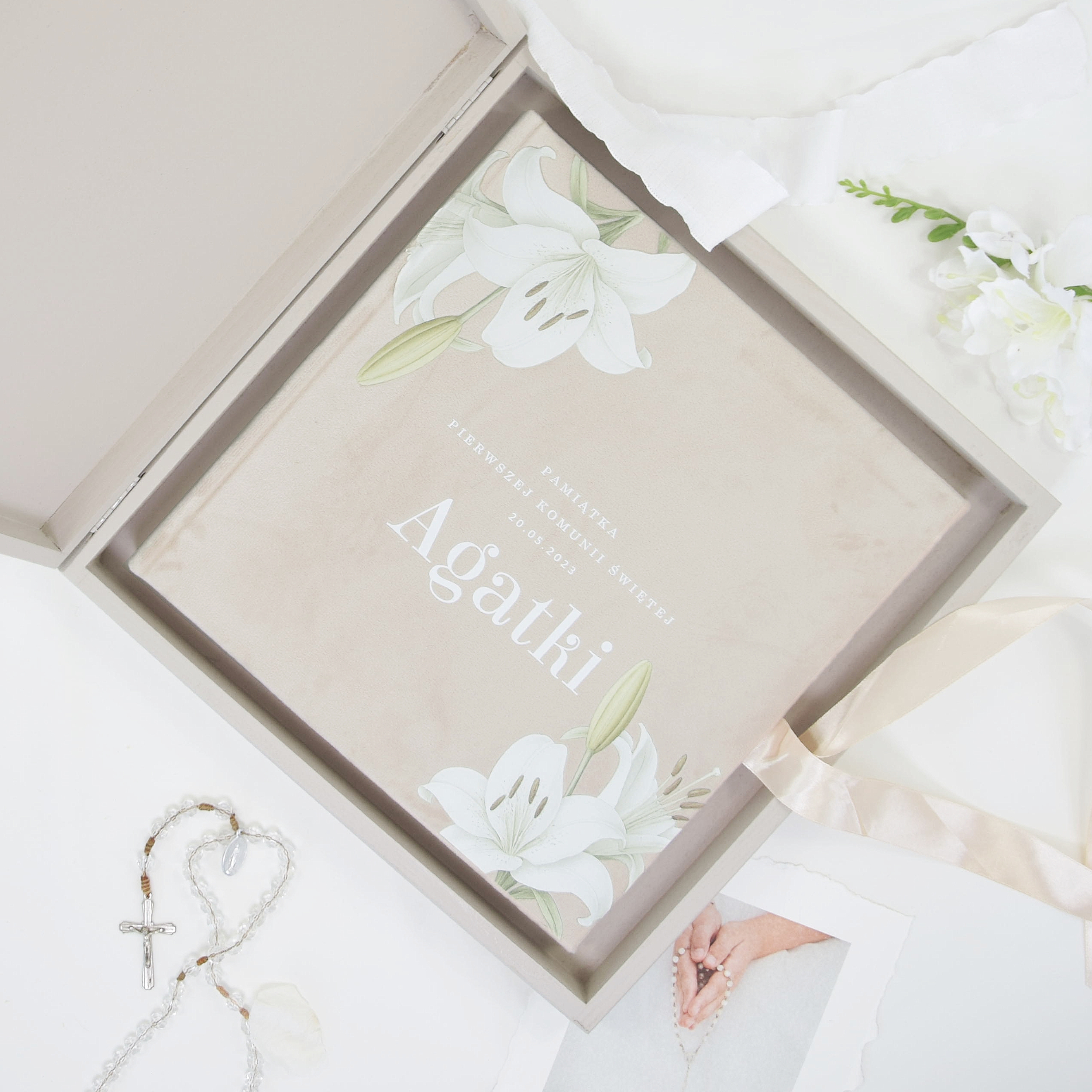 Zestaw komunijny „Biała Lilia” – album na zdjęcia + pudełko