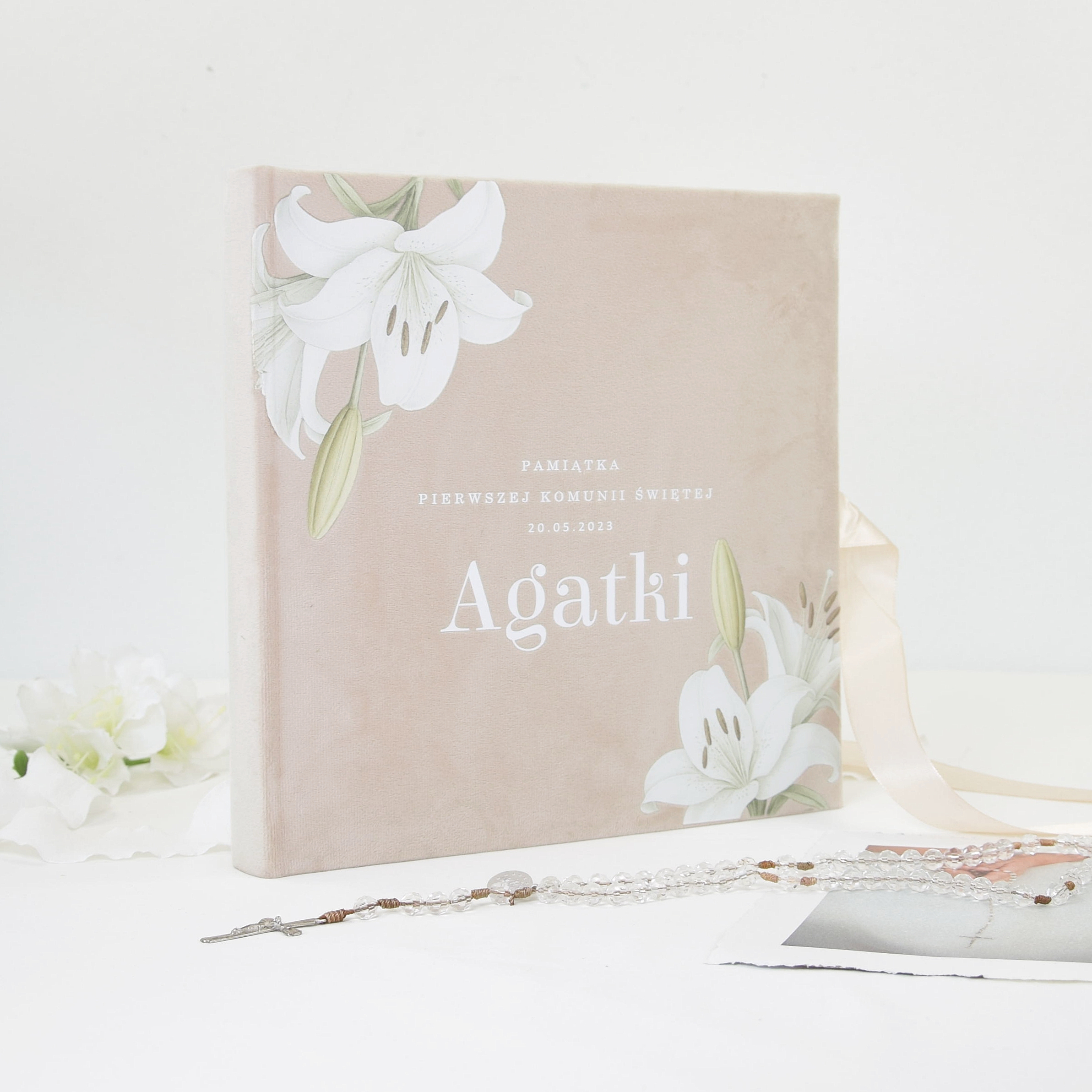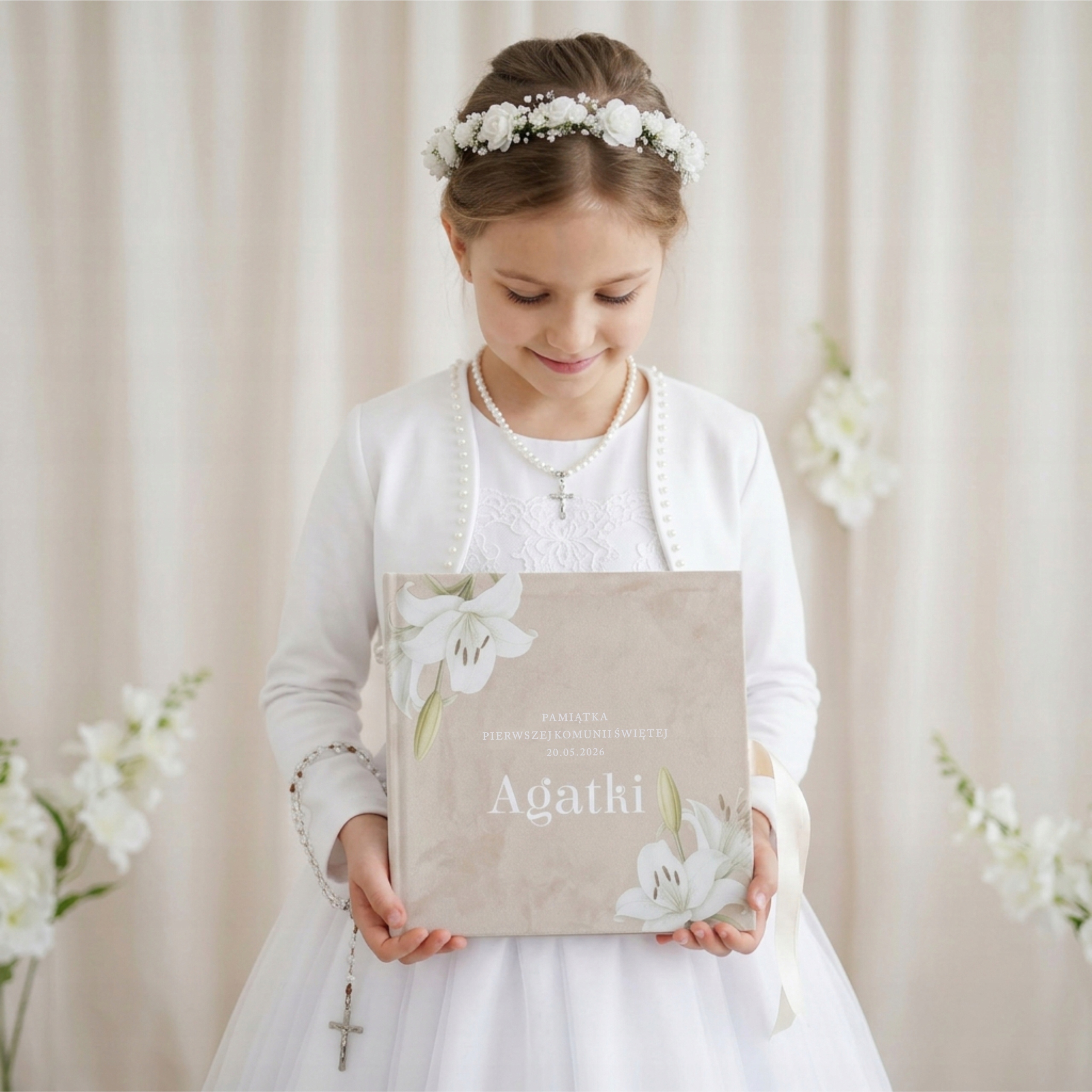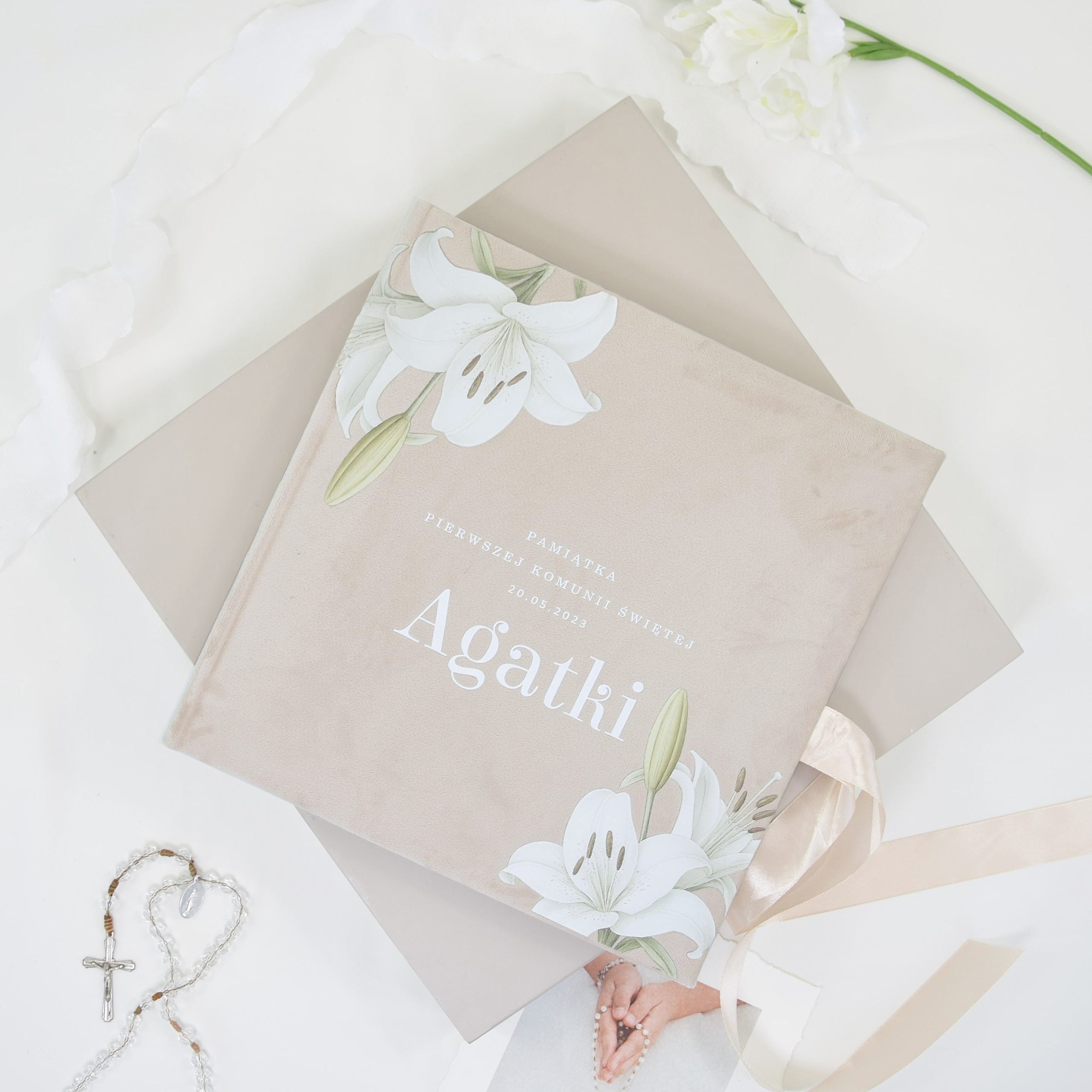 Zestaw komunijny „Biała Lilia” – album na zdjęcia + pudełko