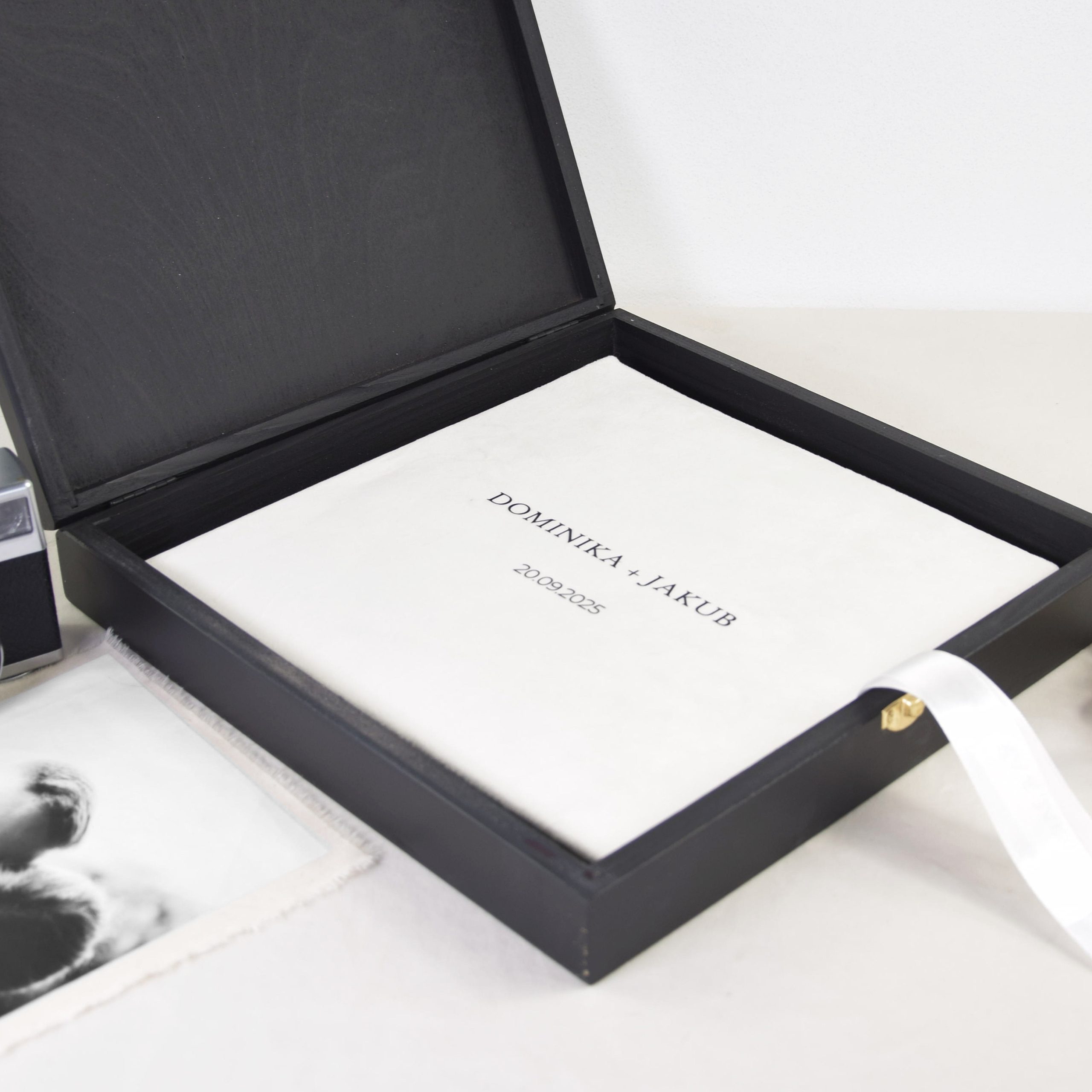 Eleganckie, czarne drewniane opakowanie z grawerem kryje w sobie biały, welurowy album tradycyjny o minimalistycznym designie i ponadczasowym charakterze. Każda karta to przestrzeń na wspomnienia, które nie znikną wraz z awarią telefonu. Tutaj zdjęcia mają duszę — są częścią historii, którą można dotknąć, przekazać dalej i zachować dla kolejnych pokoleń.
